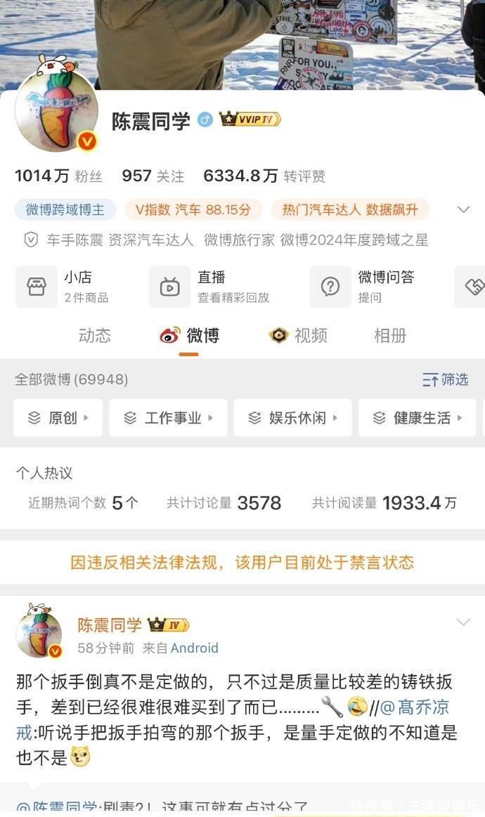 这场禁言风波,本质是长期争议的集中爆发。网友对他的不满,早已不止于单次言论:有人吐槽他 “天天阴阳某大厂”,靠极端言论煽动群体对立;有人指责他脱离车评本质,把 “制造争议” 当成流量密码;更有人直言,灾情面前抖机灵、传播虚假信息,早已突破了内容创作者的底线。作为原汽车之家金牌主持人,陈震曾凭借《越野路书》等优质内容积累口碑,专业能力毋庸置疑。