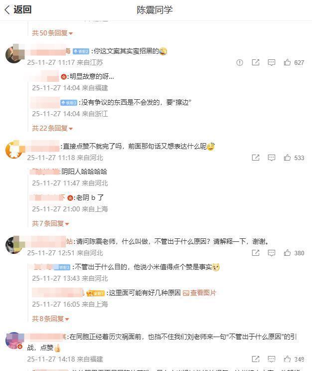 后续他承认因过度依赖辅助驾驶、低头捡东西引发事故,公开道歉并提醒公众谨慎使用智驾功能,虽态度诚恳,但已让其专业形象打了折扣。真正的舆论风暴始于 11 月底。香港大埔发生火灾后,小米公益基金会捐赠 1000 万港元驰援,陈震带话题转发时写下 “不管出于什么原因,但这事本身没得黑,点赞~”。