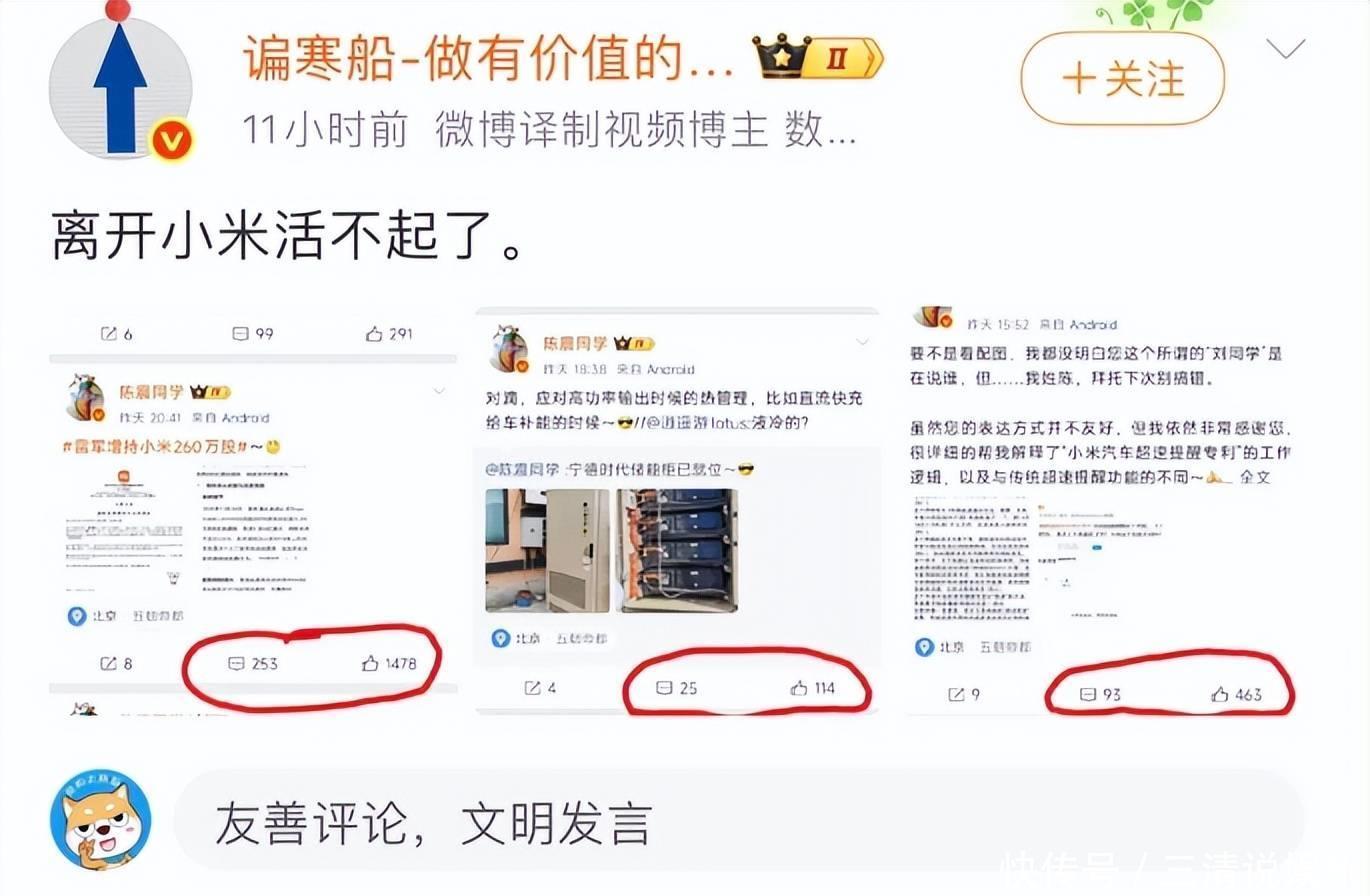 面对质疑,他辩解 “以为是部门名称”,这种苍白的说辞更坐实了传播虚假信息的事实。陈震与小米的纠葛早有渊源。早年他是资深米粉,还是小米汽车首发体验官,曾晒出与雷军的合影。但自小米 SU7 发布后,双方关系逐渐破裂:删除合影引发 “闹翻” 猜测,YU7 发布时未获试驾邀请,他与雷军也互相取关。此后,陈震开始频繁聚焦小米,直言 “小米流量大,从没否认过蹭流量”,而数据也显示,他发小米相关内容的互动量是其他内容的十倍不止。